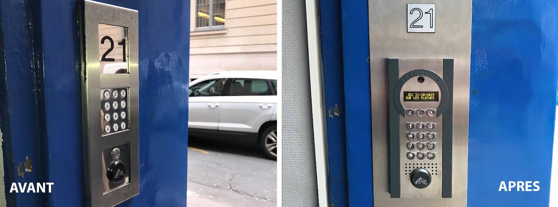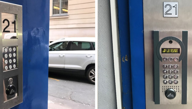 Dépose d’un DIGICODE d’ancienne génération, puis mise en place d’un système d’interphonie sans fil qui permet de « distribuer » une interphonie sans passage de câbles . Les communications « arrivent » directement sur votre mobile et permettre alors de décrocher ou l’on veut et aussi de visualiser la personne qui cherche à vous joindre au bas de l’immeuble.